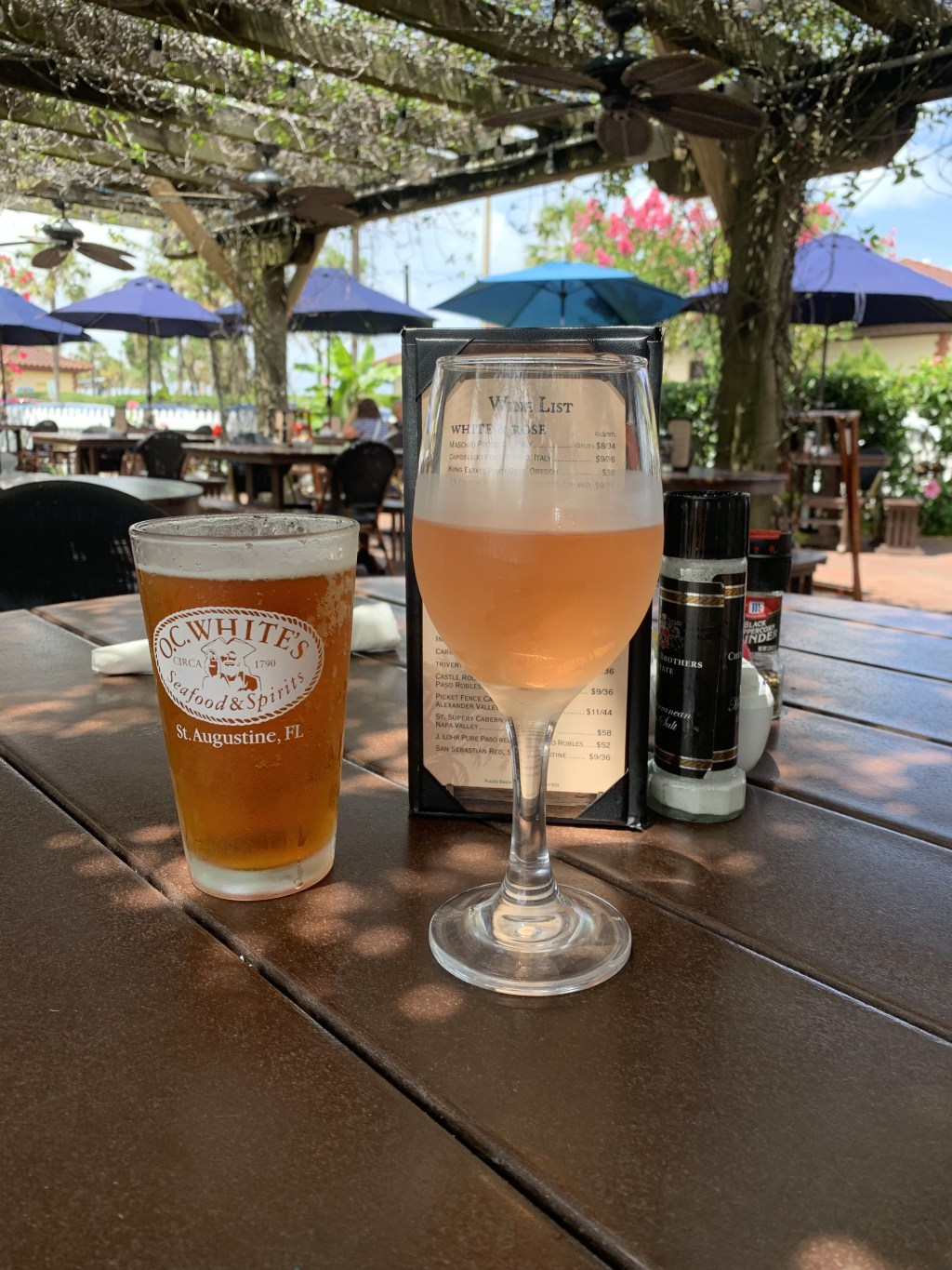 Celebrated today with a late lunch/early dinner at O.C. White’s. We felt like burgers! They are pretty much a seafood place, but they do have other options. What makes them special is the location. They are right on the bayfront offering beautiful views and they have a beautiful outdoor dining area with a pergola and live music. Didn’t get the name of the guy playing that day, but he was very good and had a nice mixed repertoire. He really enhanced the relaxed vibe. I believe he is there Friday and Saturday’s.