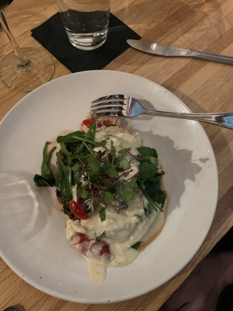 As mentioned previously we do Birthday Week. On day 2 of my celebration we had dinner at our favorite local trattoria, Nonna’s Trattoria on Aviles Street. When I say favorite, seriously we eat there once a week and the food is always good with great service, and tonight was no difference. We shared a bottle of Cab; we both had the grouper which was delicious and tender with a lemon caper sauce. Phil had a side of pasta with the same sauce and I had a Caesar Salad. And because it was my birthday Adamo sent over a piece of tiramisu which is always a treat!