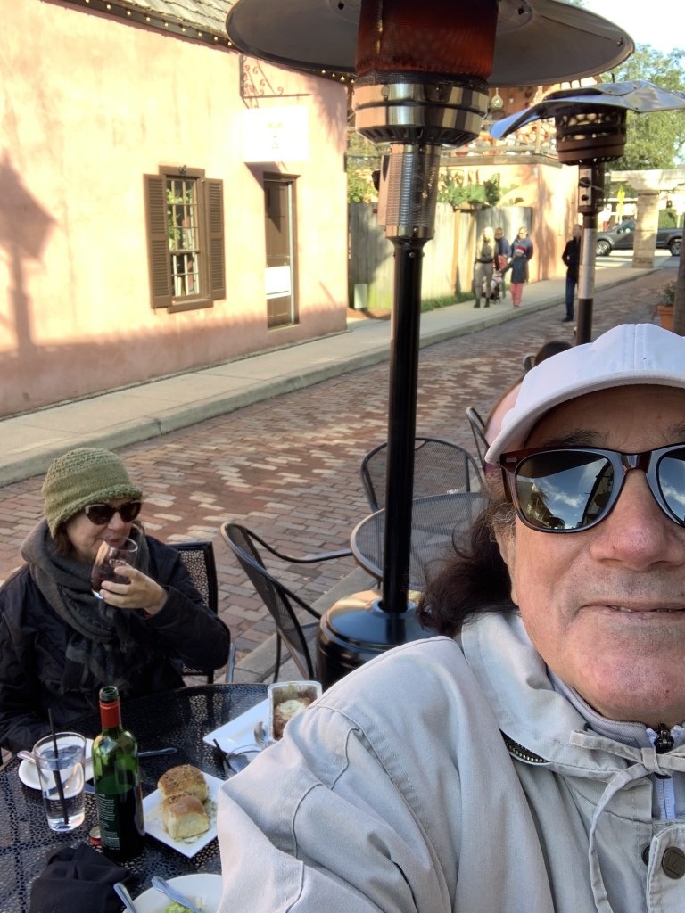 A few weeks ago, my nephew came to visit for a weekend. He is at college at Embry Riddle studying to be a Rocket Scientist (seriously!!!). He was overwhelmed with schoolwork and finals and wanted to get away for a weekend. So we picked him up in Daytona and came back to StA. We had a great time hanging out, walking Lincolnville, showing him around, and eating and drinking. But the funny part is he told my sister he had a great time and “Phil and Dee are famous.” LOL We are not famous, we just know those in our neighborhood; we our locals with our local hangouts, and there ‘everyone knows our name’. He also told her we took him to ‘fancy’ restaurants. Ok, maybe one was fancy!